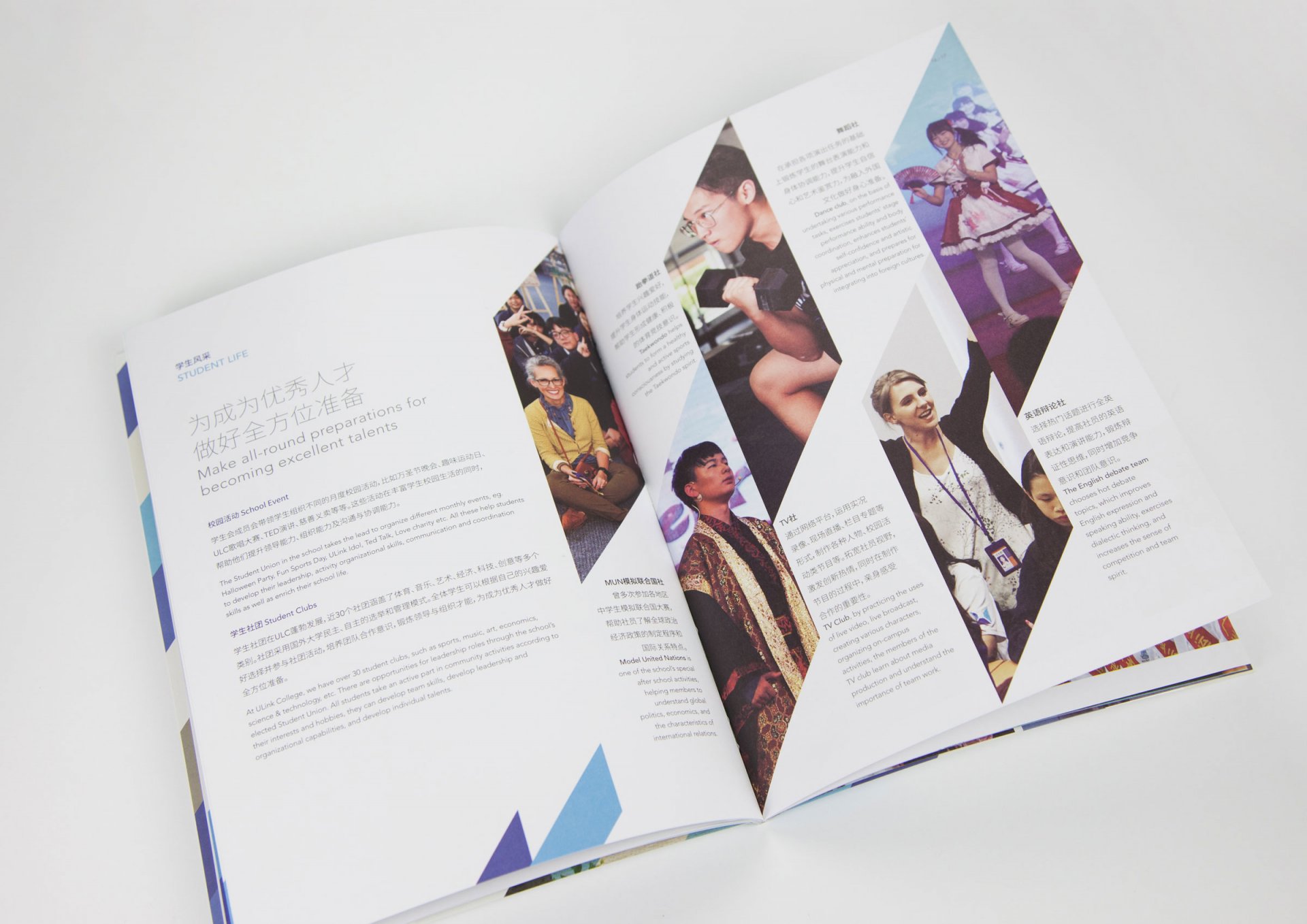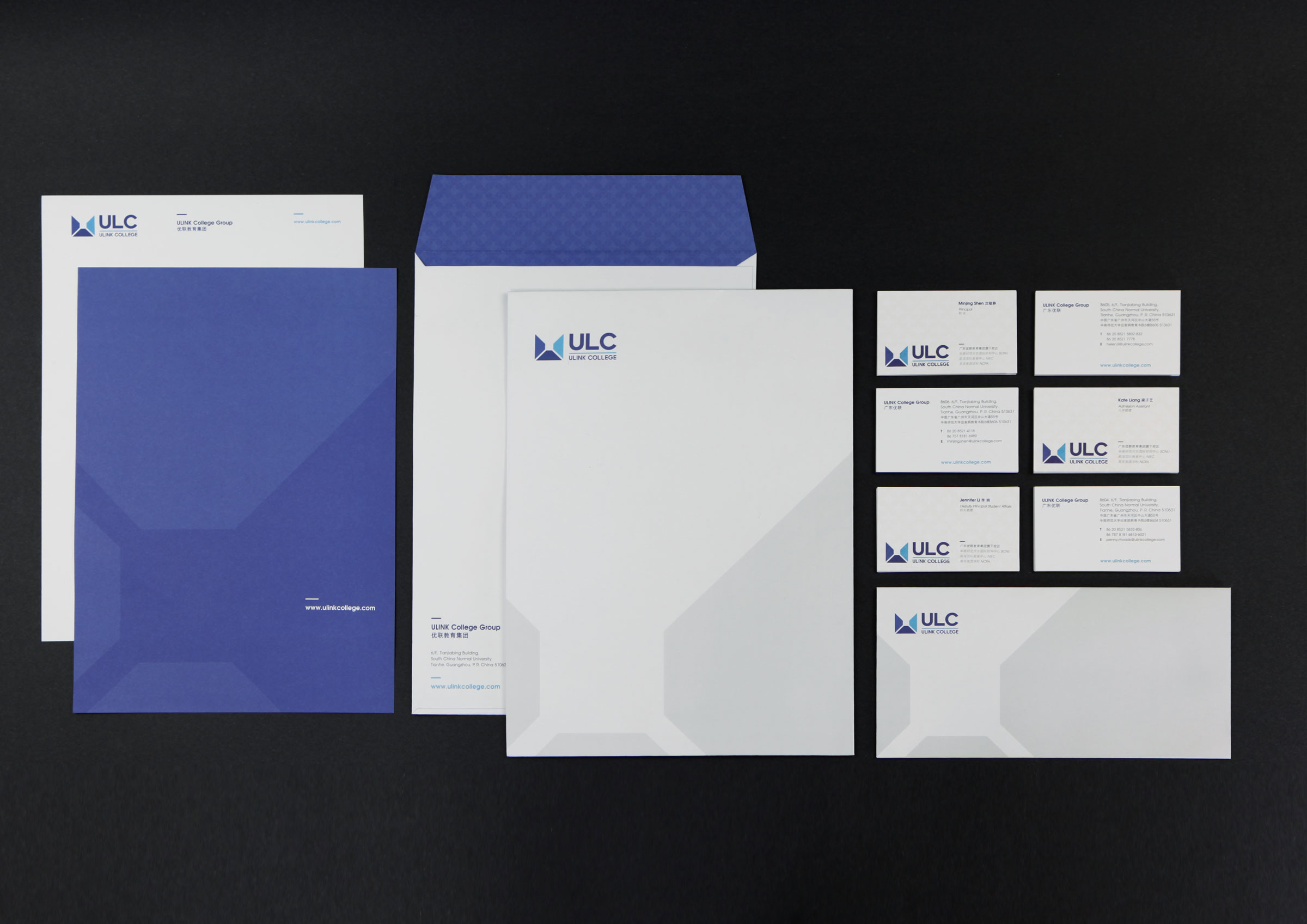 ULC is devoted to excellence in providing international education and opportunities to world’s top universities for students. The concept starts from the understanding of the interlocking relationship that students, ULC and global institutions have formed, so we make a combination of triangles and trapezoids to create a three-dimensional illusion of "U" as the brand logo. The logo is similar to the aerial view of a triangular pyramid that brings out the idea of being top and aces. And the elements of logo can be flexibly applied to diverse visual dimensions so to keep the brand image outstanding and consistent.
