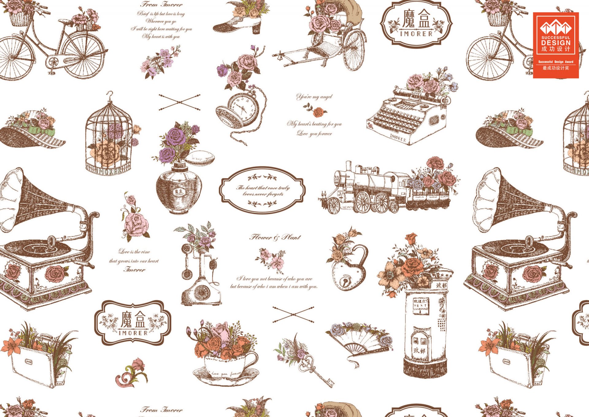 Imorer has an advantage in potted plant sales and hope to pull up the sales of fresh flower. We came up the idea of 1+1 more than 2 by combining potted plants, which representing everlasting company, and fresh flower, that seize the attention of dramatic love, together as a bundled product. By adding more values to Imorer, we assist our client to develop a wechat message platform including upload your intimate video or message to your beloved receiver. The whole brand image is wrapped up by a Shanghai retro atmosphere delivering romance&love in every detail.