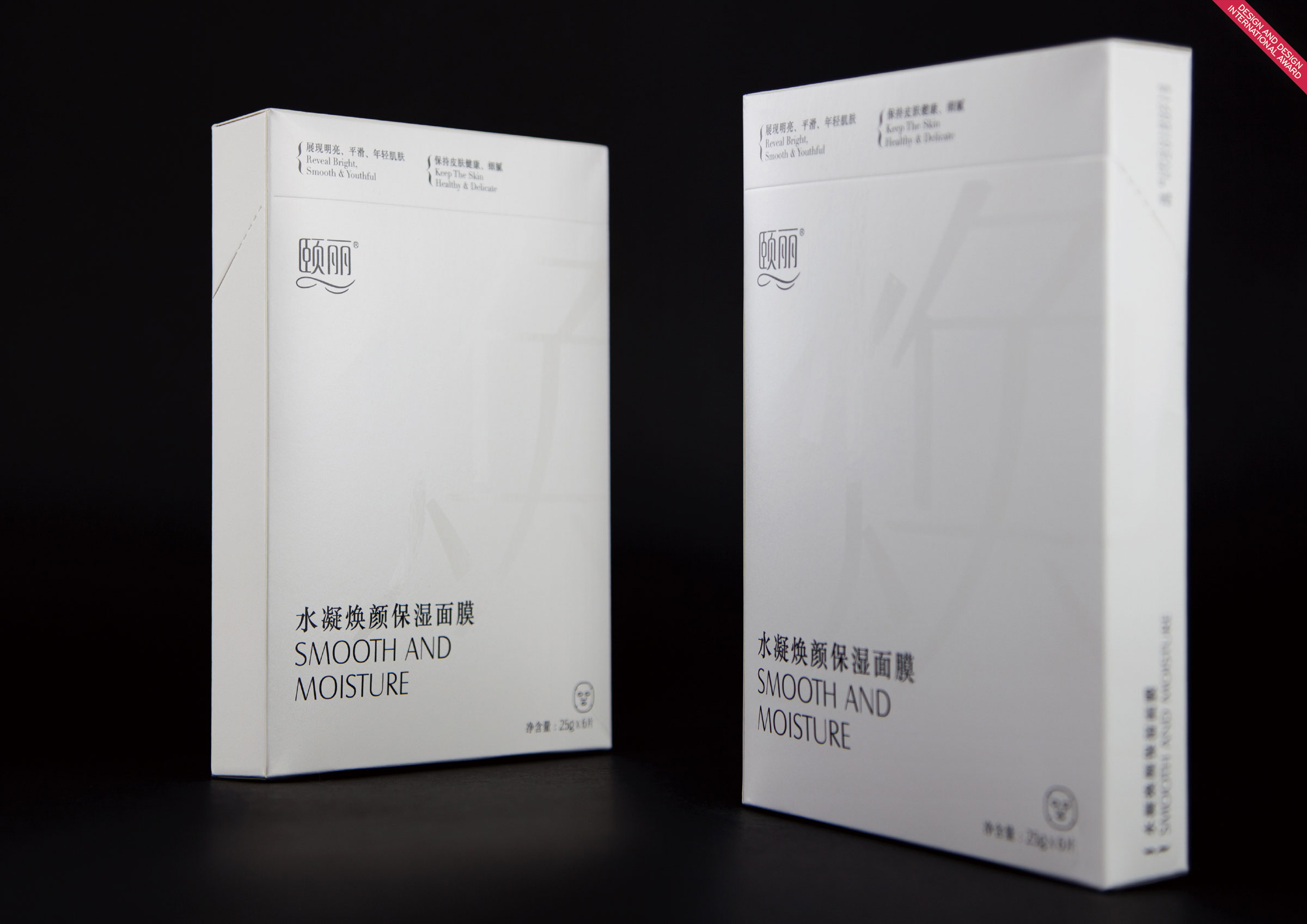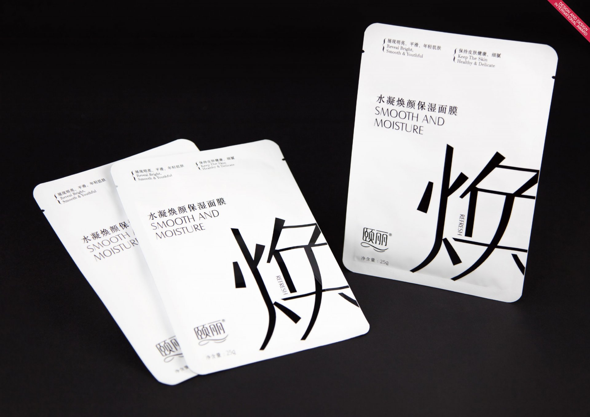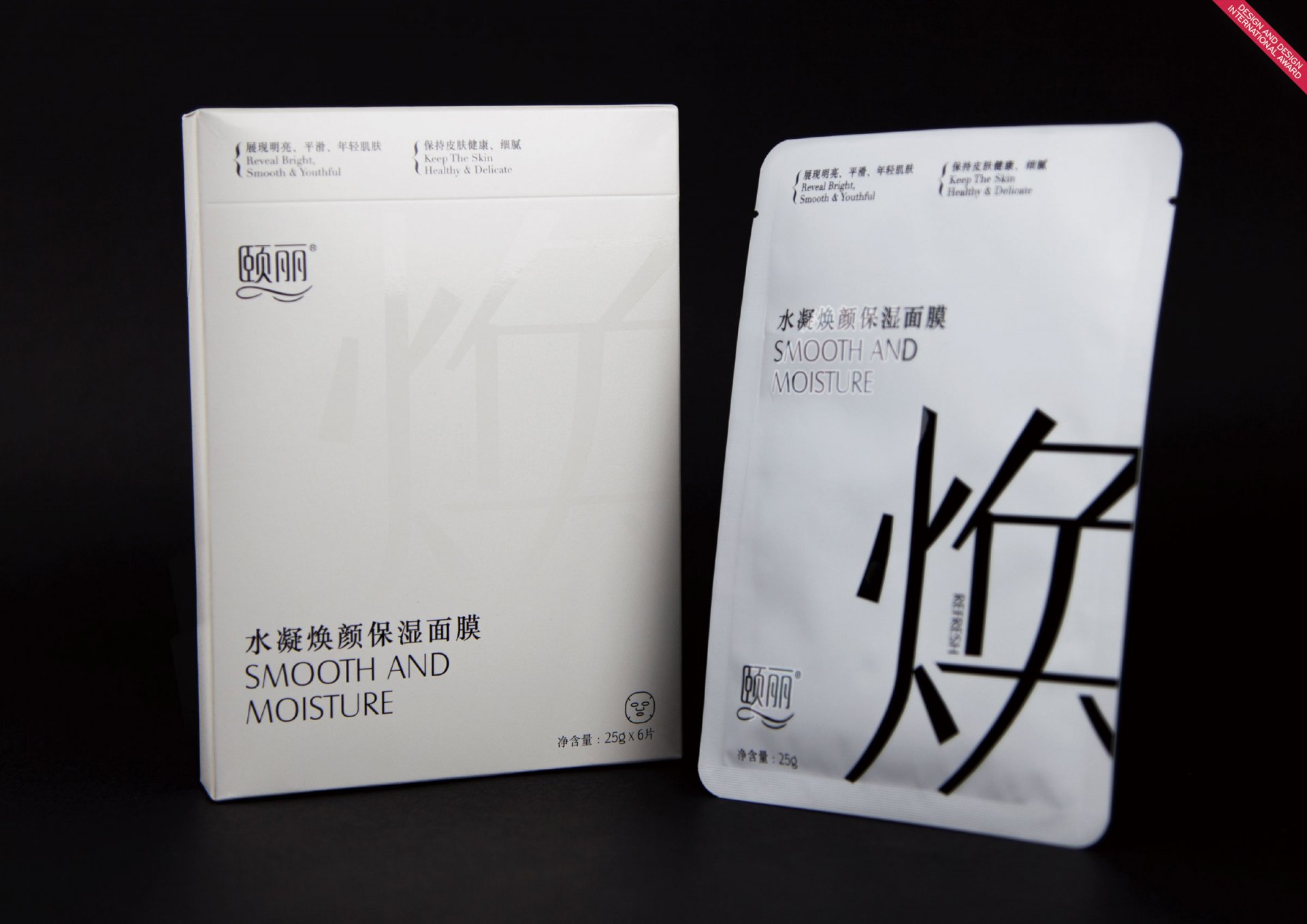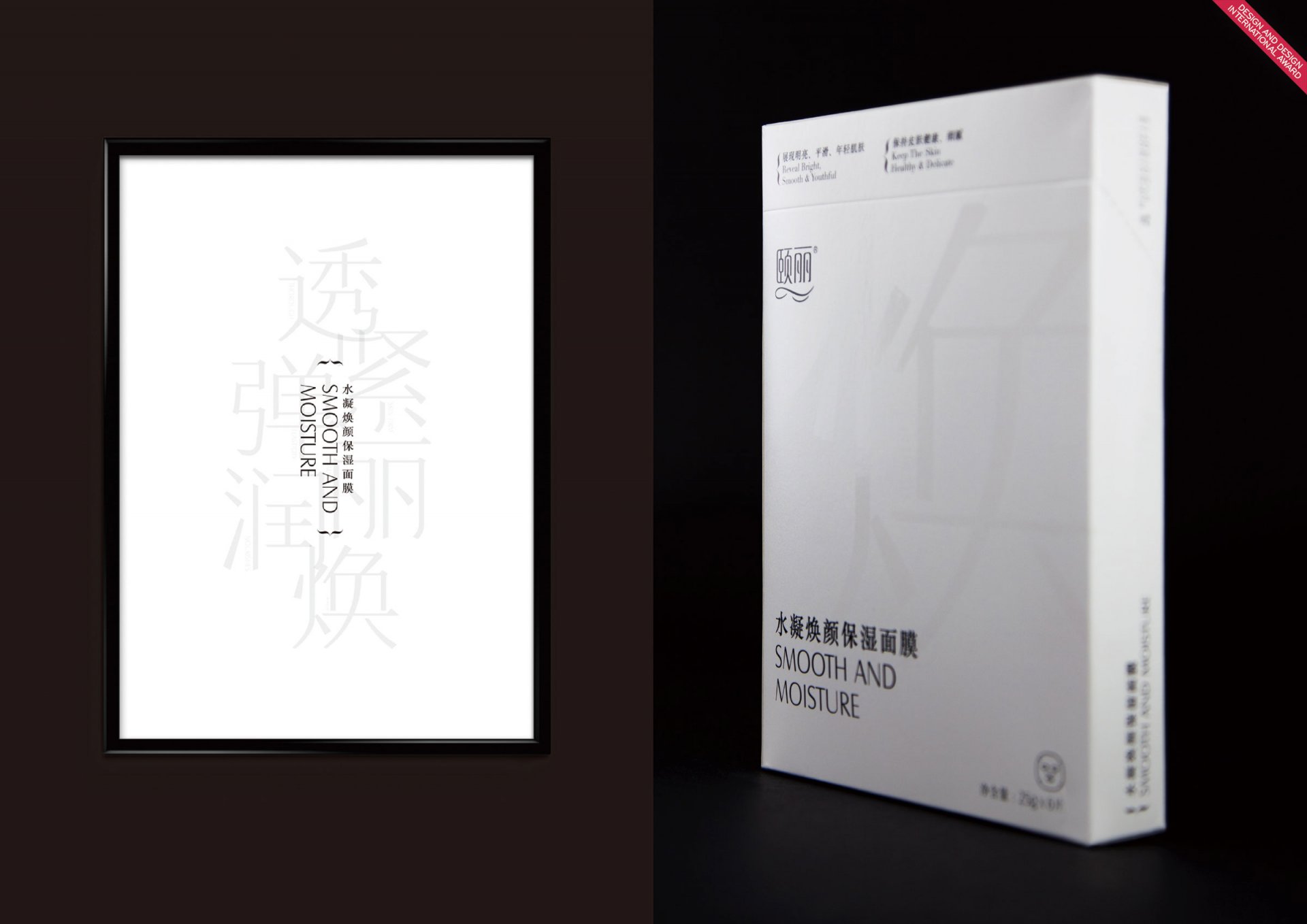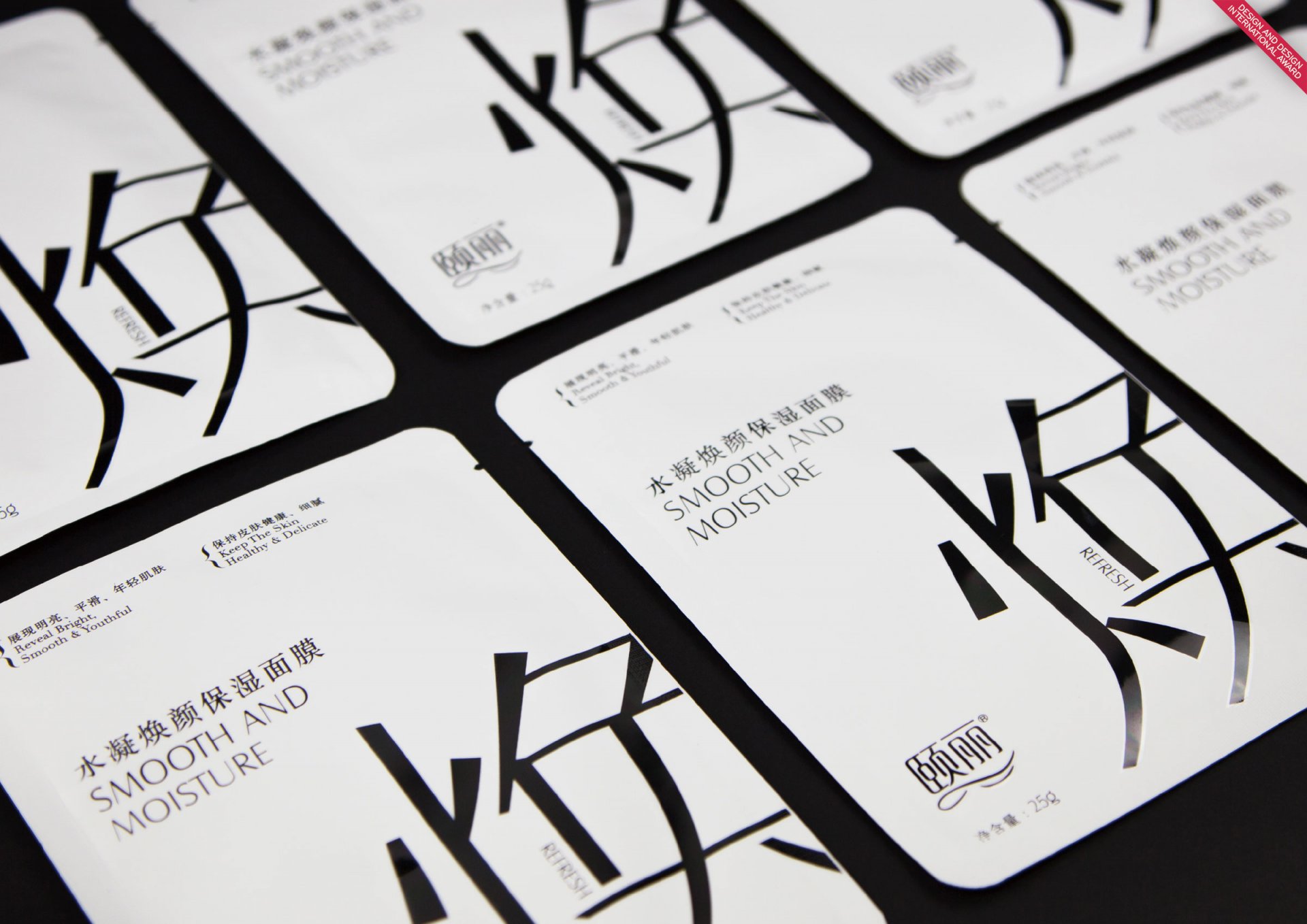 Smooth and Moisture Mask - Mask packaging has highlight smooth and moisture of their selling point, develop as main design element. Through the classic black & white colour as well the unique font design, to express unique brand personality and its premium grade. This design has stand out the product selling point visually, so that, consumer could receive product positive information directly.