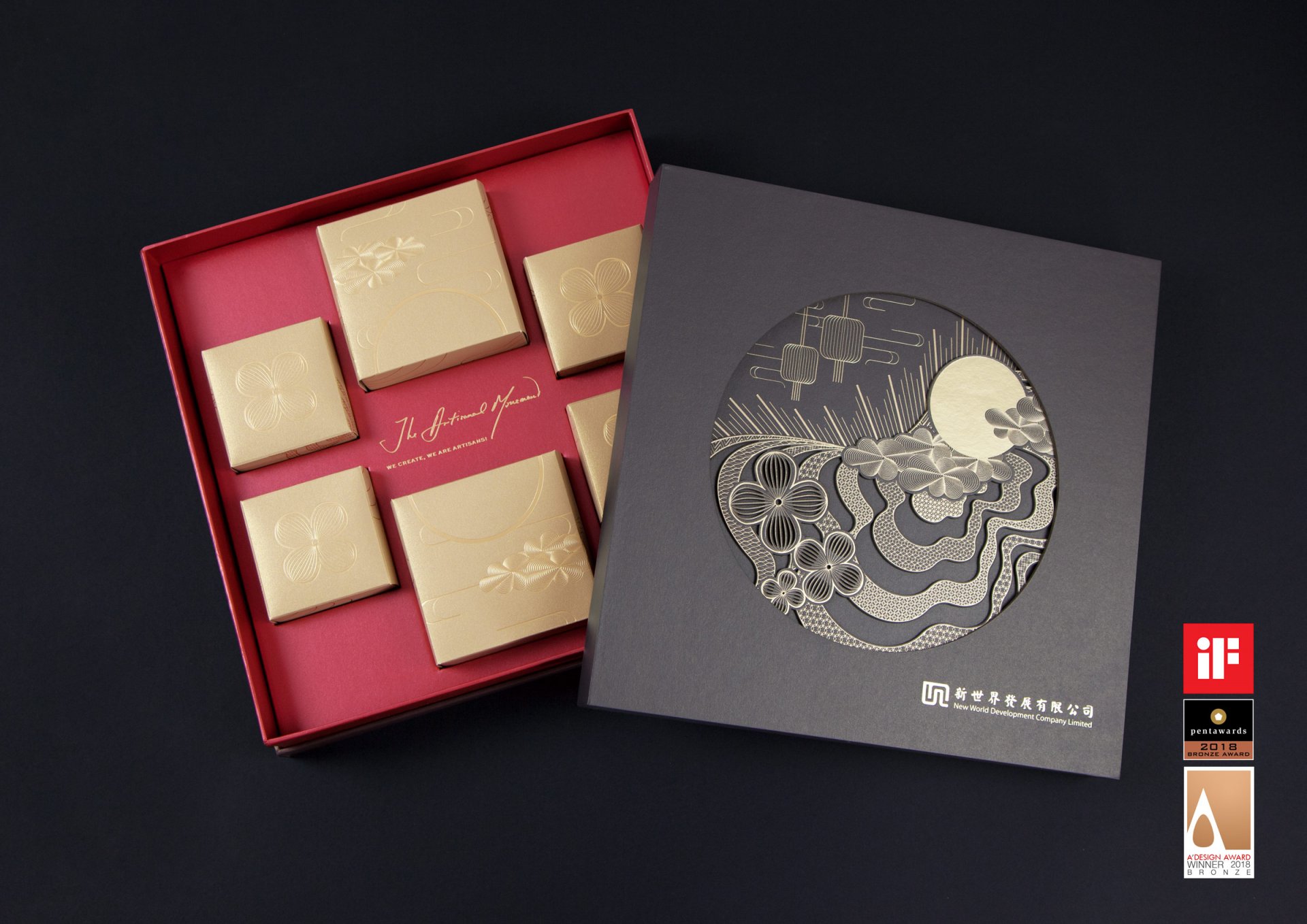 New World Development Company Limited (NWD) commit to adding superior taste and creating a true artisanal journey for its clients. Based on this service mission, we express the Chinese traditional hand craft art in a new modern way. The new mooncake package is presenting the new aesthetics of living by NWD's statement.