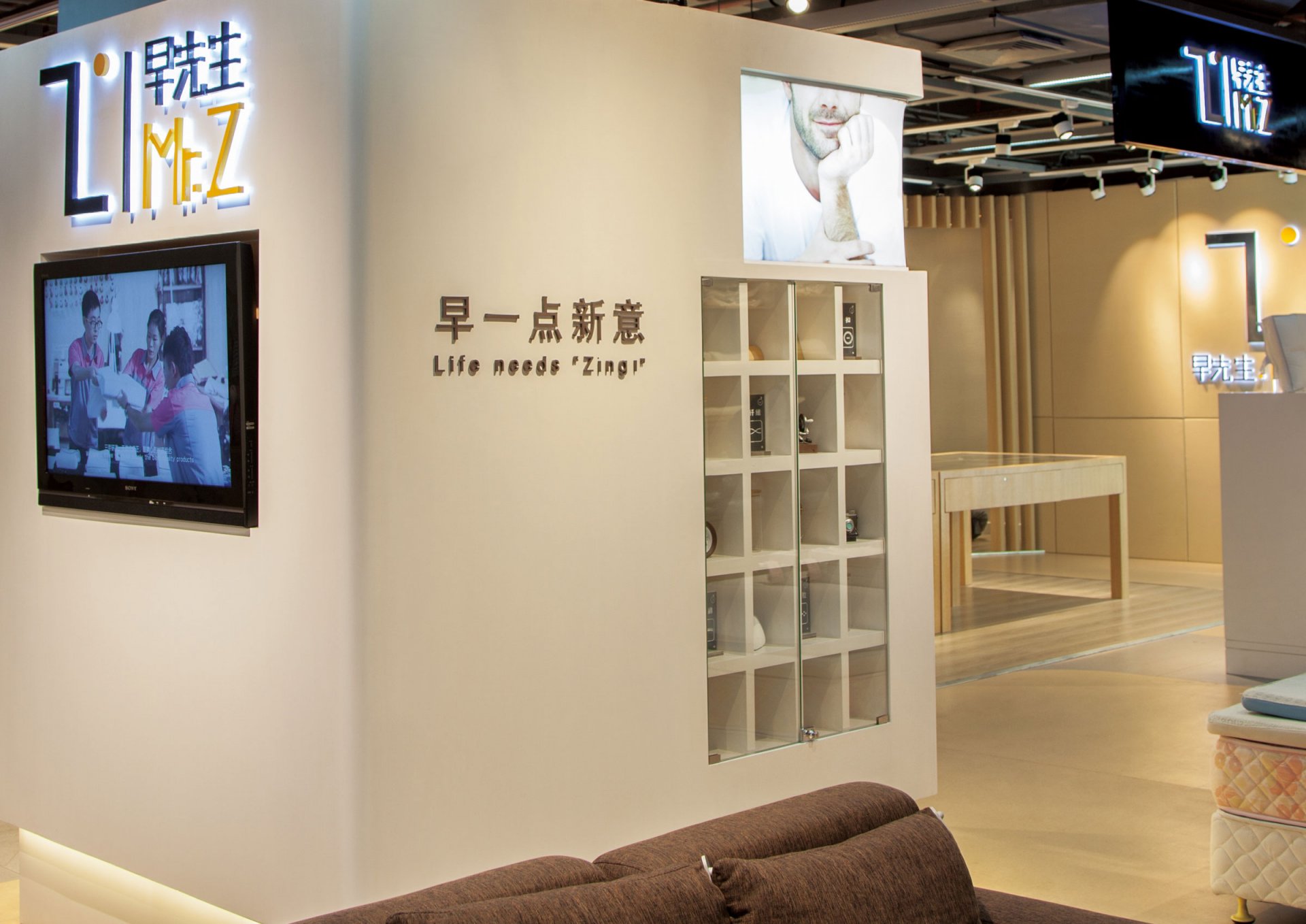 Not like the tradition standard store design, we create a unique brand concept for the specific characteristics Pillows Combination product line from Mr. Z. The interior design is focusing on curving display cabinet to tie up the product concept as a supportive core of a pillow. Dynamic showcase presents a variety of products concepts by different materiel and key functions. It is not only increasing the dynamics activities between the sale and consumers, but also highlight the diversity of the product concept.