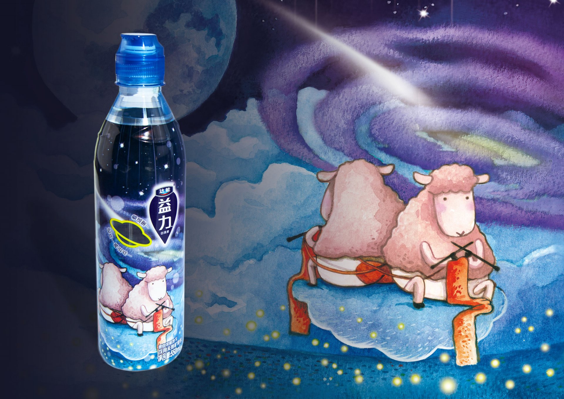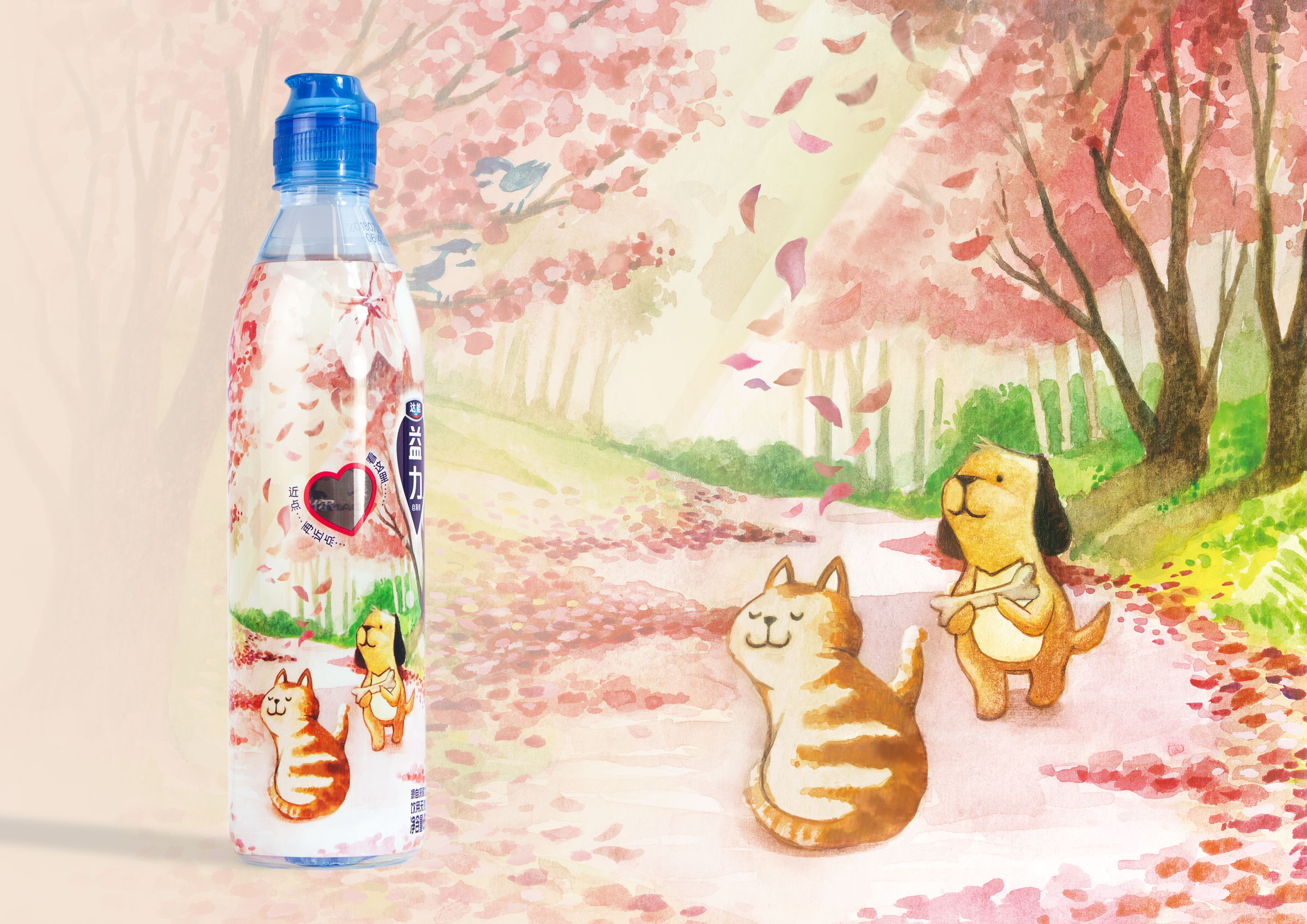 Focusing on the Chinese young generation, DANONE launched a new series of Sport Cap water to express youth’s personality and enhance emotional resonance with them. BOX designed three topics: personality, love and friendship with watercolour painting in fairy-tale style, in which messages are hided in the bottle. Youths could explore their imagination with the exaggerated and virtual image on the bottle.