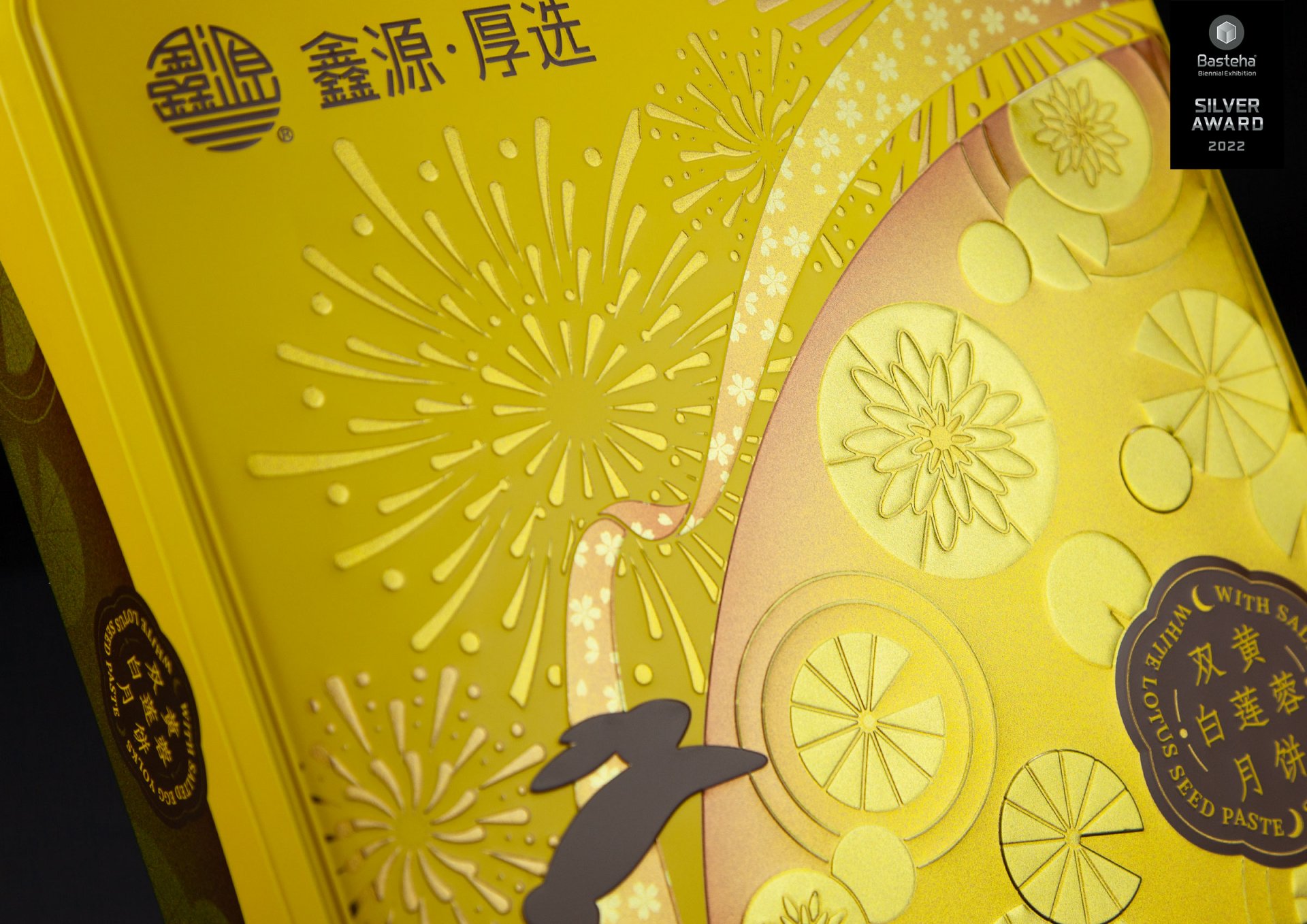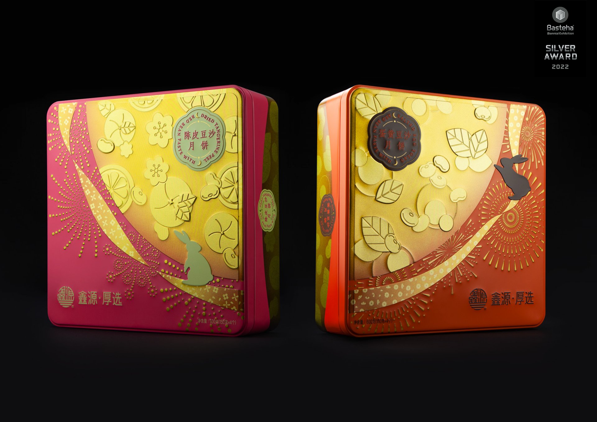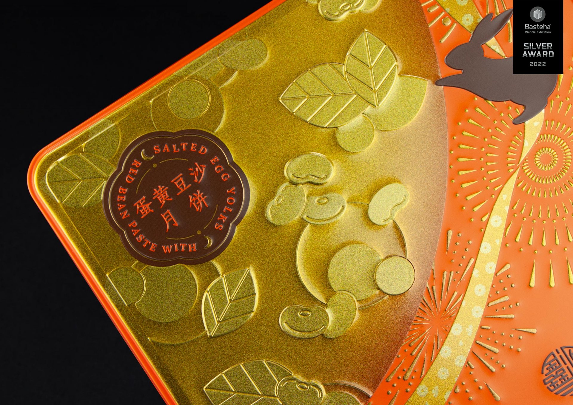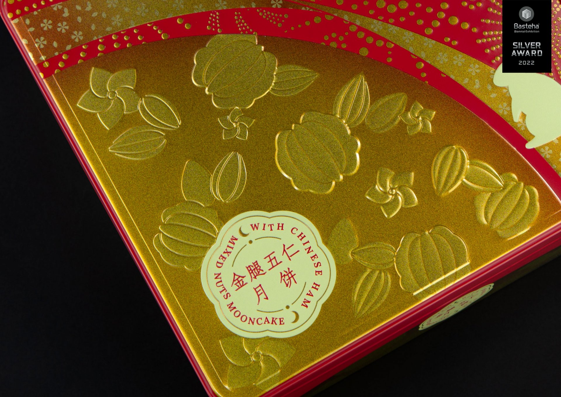 The joy of reunion was embodied by the Jade Rabbit shuttling back and forth to dance on the moon full of flowers. The packaging of 4 different flavors could be cleverly combined into a picture of blossom full moon, in which the Jade Rabbit jumping and dancing with the long ribbon. Together with the layered fireworks pattern in the background, the whole picture conveyed a joyful atmosphere to the festival.