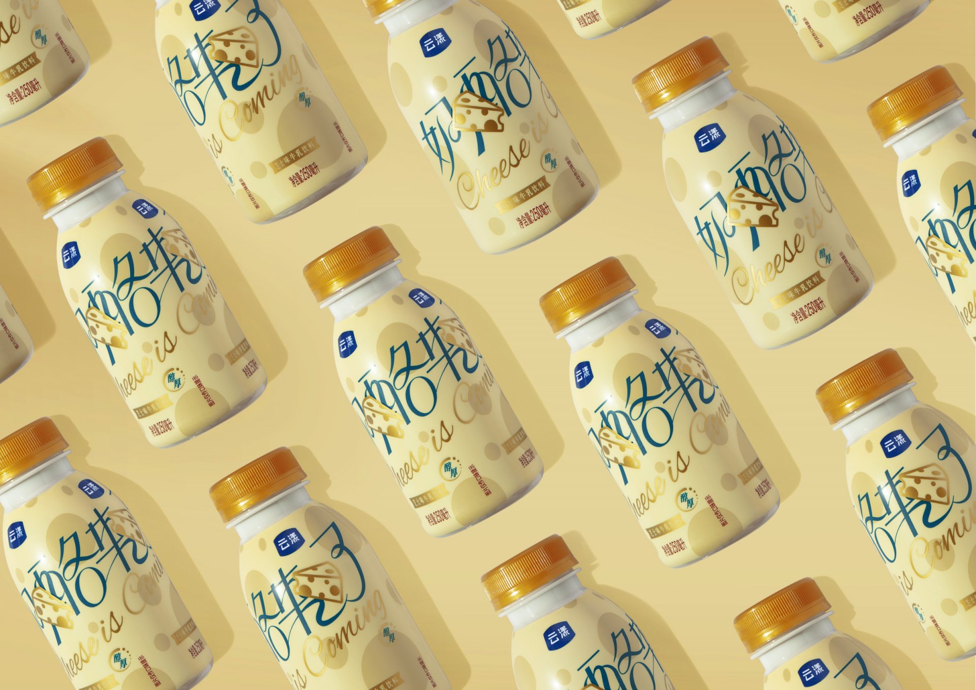 Enjoy delicious cheese with intoxicated. Live an exquisite and unique life while drinking a bottle of delicious health. Elegant fonts design along with simple lines and colours create a premium and pure visual, which presents the high quality of product.