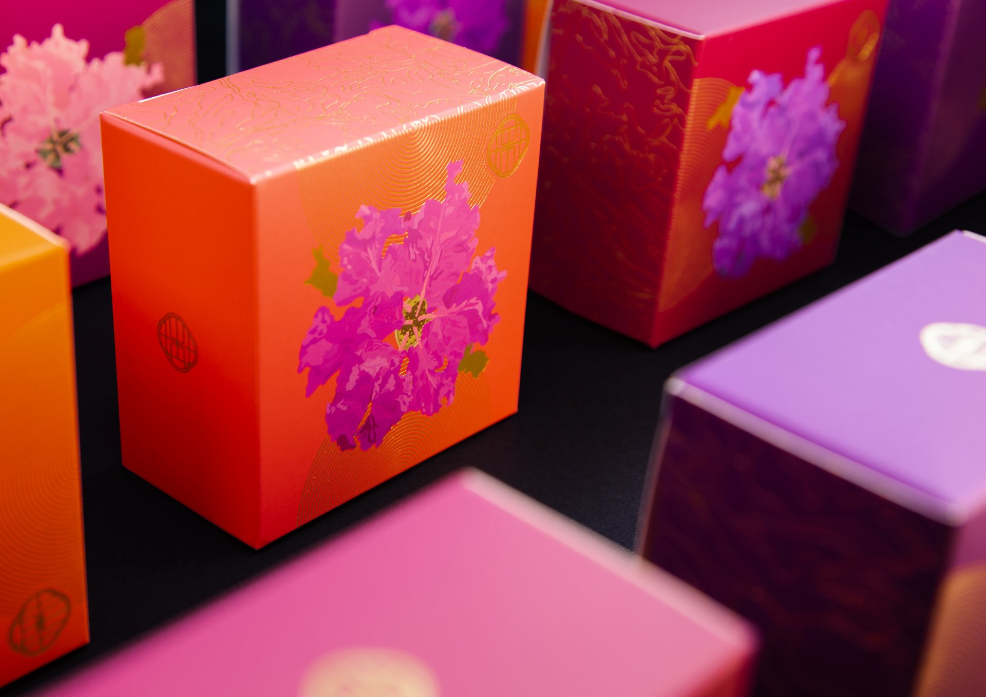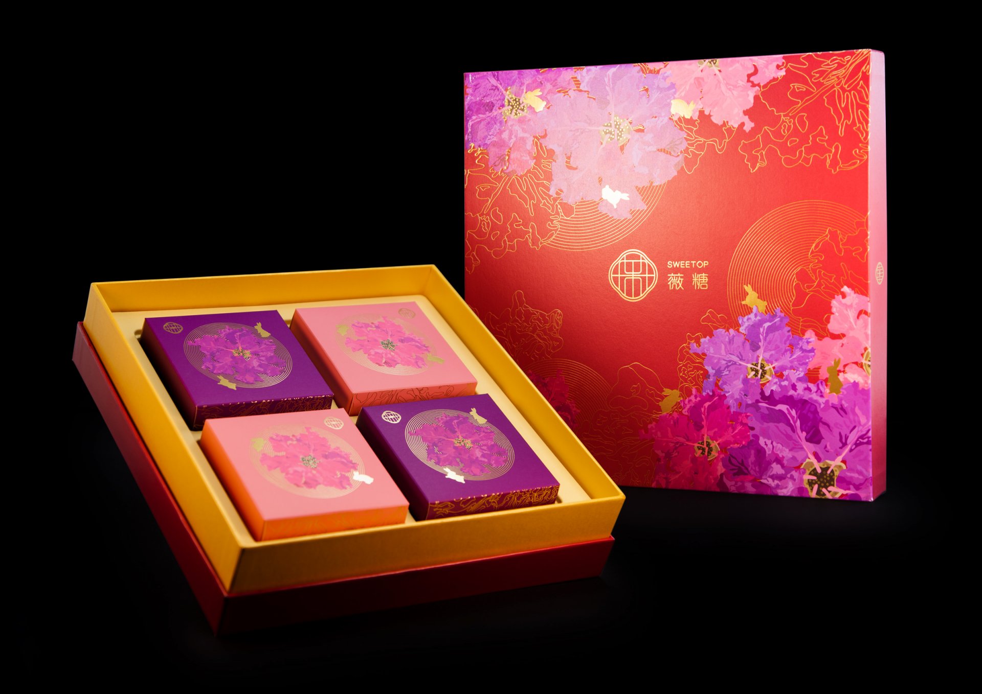The brand new mooncake gift box that SWEETOP has made significant efforts to create this year is based on the theme of Crape Myrtle. This is to echo the core concept of the brand and build a sense of brand image. In a romantic flower sea, tens of thousands of flowers are dotted about, and the orange moonlight illuminates them to reflect the beauty and motion of the sky. Symbolizing the Mid-Autumn Festival as a festival with a sophisticated atmosphere pleasing both the eye and the palate.